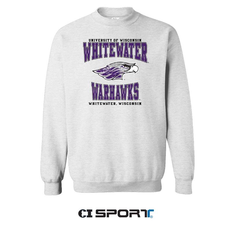 CI Sport Crewneck Sweatshirt with University of Wisconsin Whitewater over Mascot and Warhawks