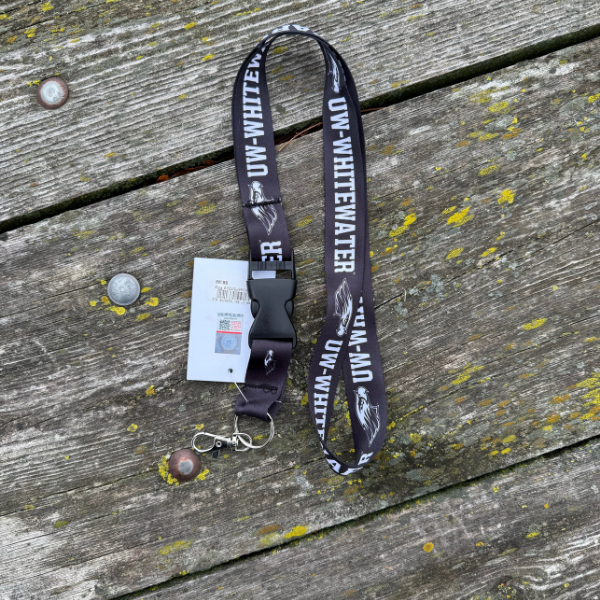 Lanyard - Black with White Lettering of UW-Whitewater and Mascot