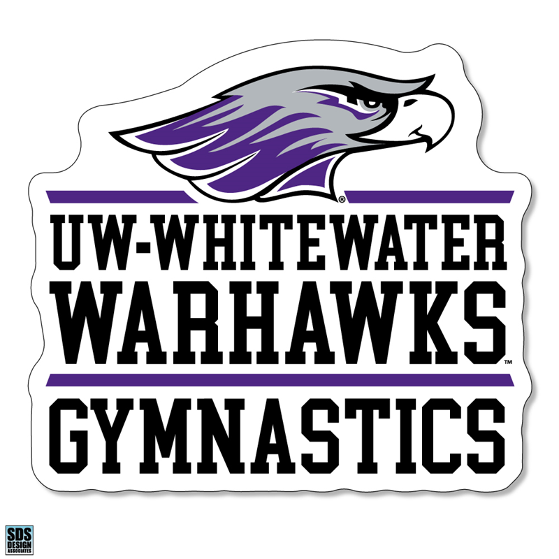 Decal - 3" Vinyl Mascot over UW-Whitewater Warhawks over Gymnastics
