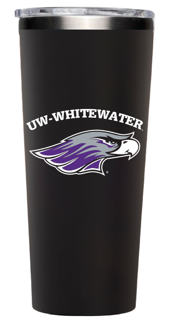 Tumbler - 24 oz Corkcicle Black UW-Whitewater arched over Mascot