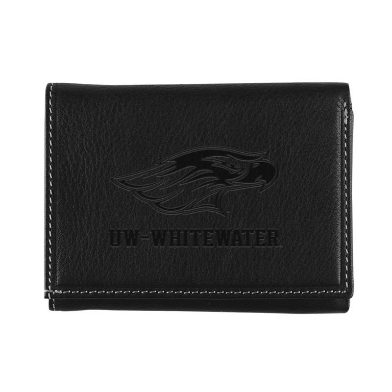 ID Holder - Black Leather Stitch Tri-Fold Wallet with Imprinted Mascot over UW-Whitewater