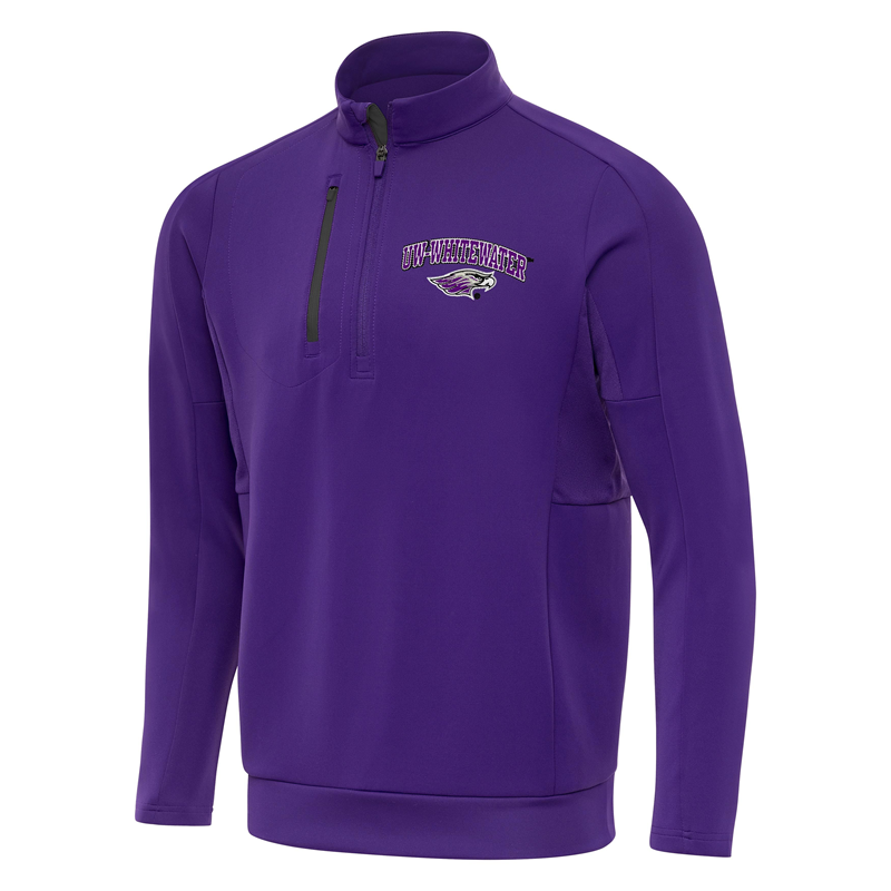 Antigua Men's Generation 1/4 Zip Purple UW-Whitewater arched over Mascot