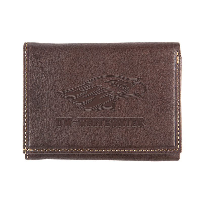 ID Holder - Brown Leather Stitch Tri-Fold Wallet with Imprinted Mascot over UW-Whitewater