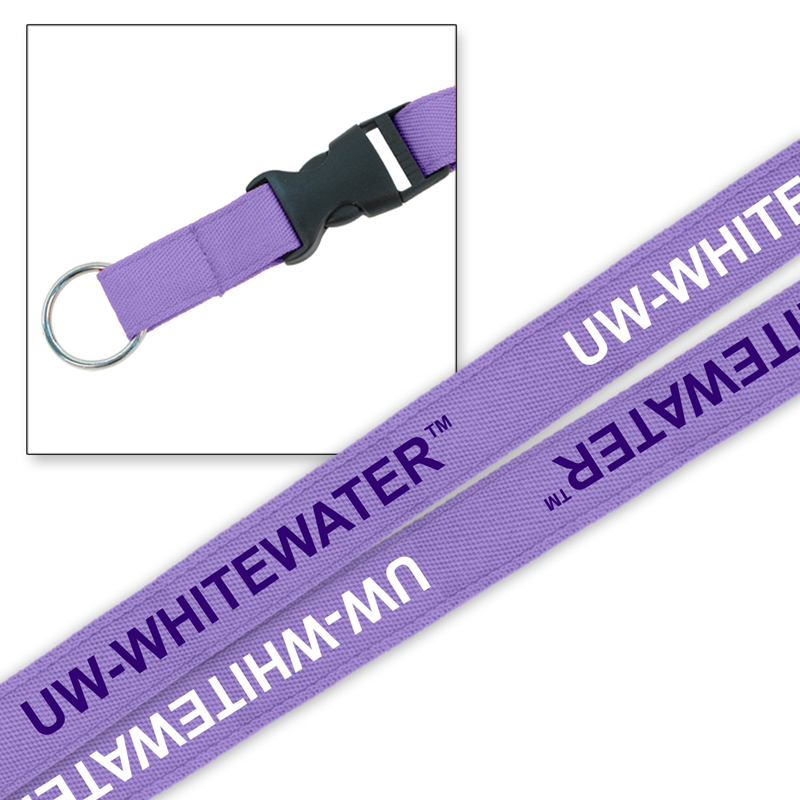 Lanyard - Woven UW-Whitewater White and Purple Repeated Lettering